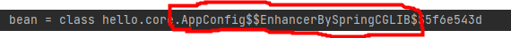 예상대로라면 클래스명이 AppConfig로 나와야하는데... $$EnhancerBySpringCGLIB이라는 게 추가된 클래스명이 나온다.