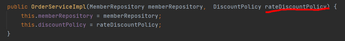 public OrderServiceImpl(MemberRepository memberRepository, DiscountPolicy discountPolicy) {