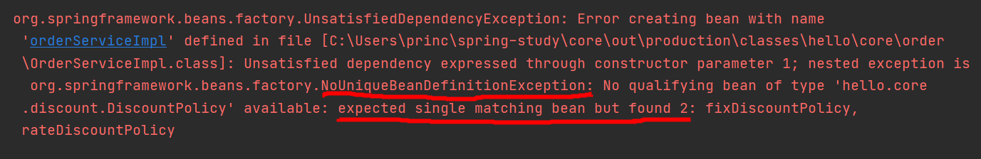 public OrderServiceImpl(MemberRepository memberRepository, @Qualifier("mainDiscountPolicy") DiscountPolicy discountPolicy) {