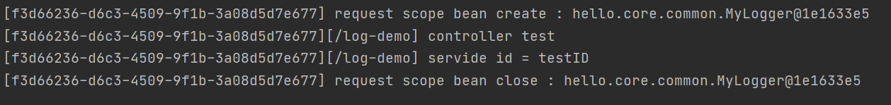 HTTP 요청마다 id를 부여해 HTTP 요청을 구분하고 싶다. 이때 request 스코프를 이용하면 HTTP 요청을 쉽게 구분할 수 있다.