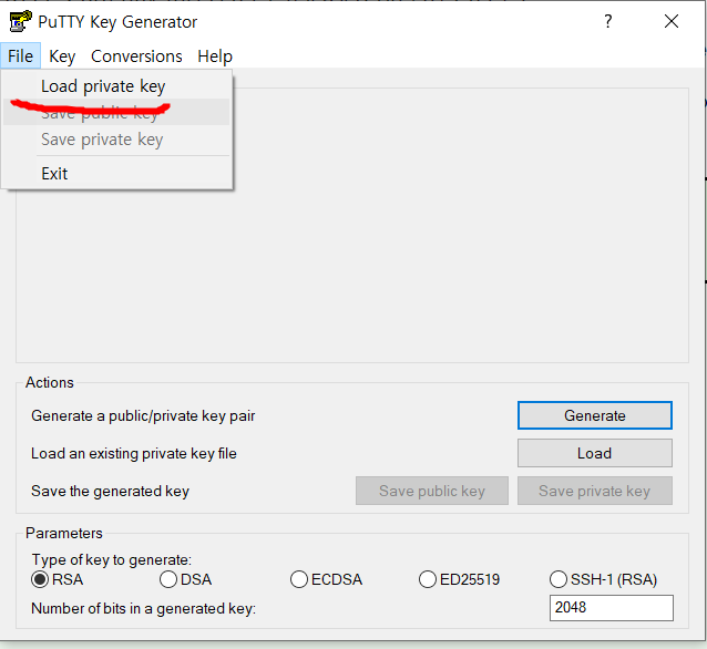 File - Load private key를 클릭합니다.