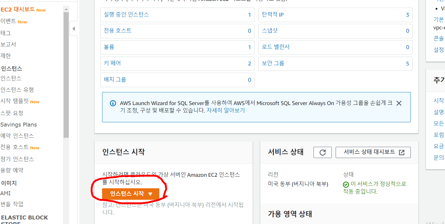 2. 인스턴스 시작 클릭