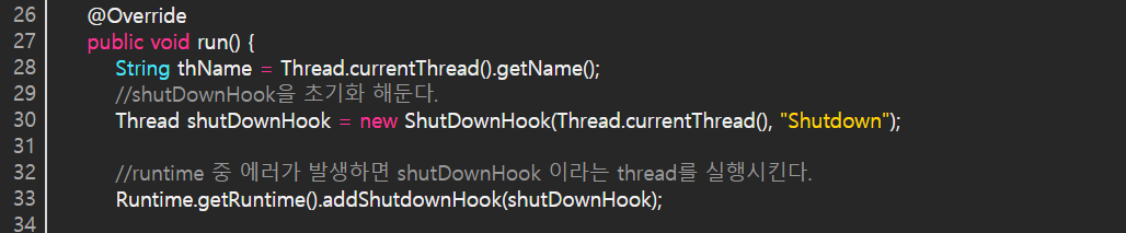 먼저 상위 thread에서 shutDownHook이라는 thread를 생성해 놓는다.